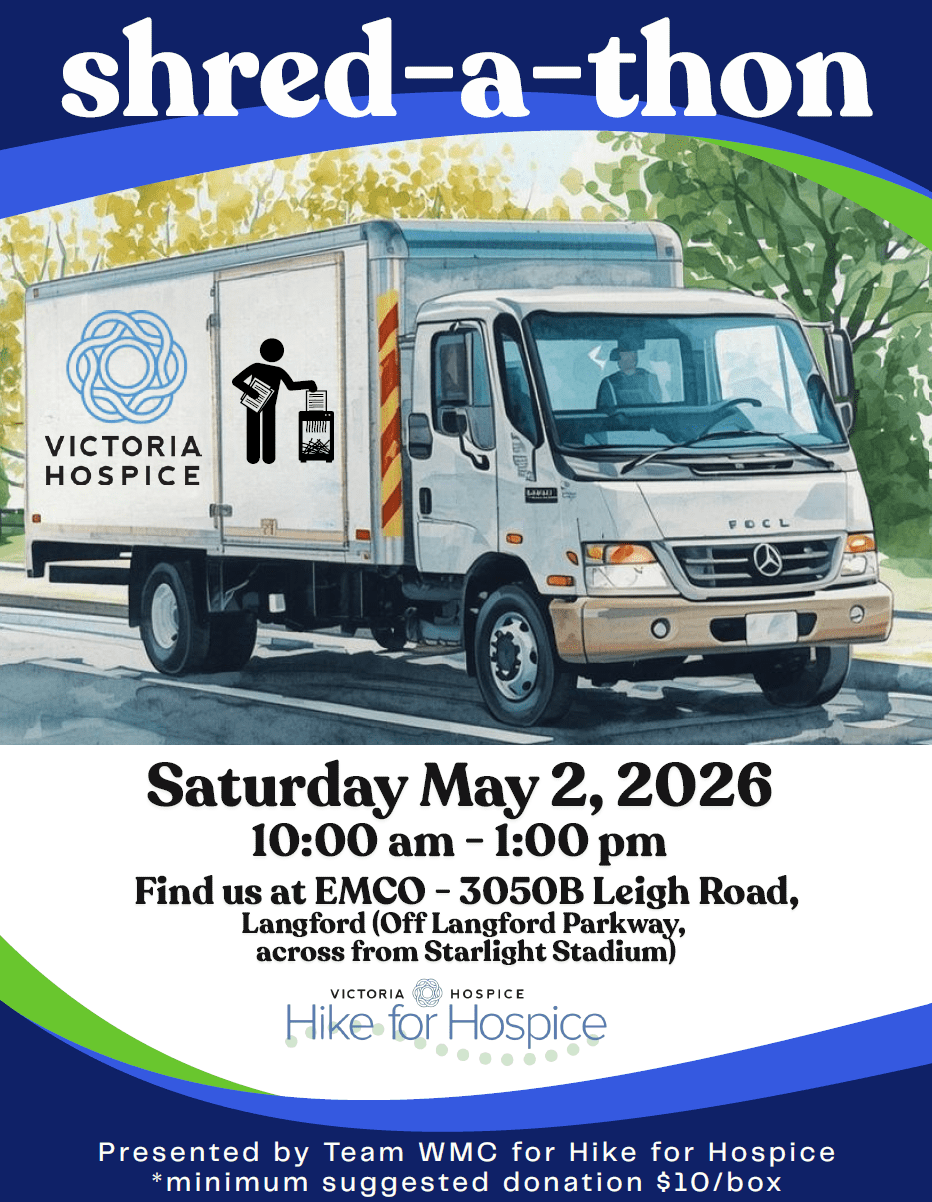 Are you planning on doing some spring cleaning? Want to get rid of old, confidential documents? Join Hike for Hospice team, Team WMC and RecordXpress in the parking lot of EMCO for a Shred-a-thon fundraiser in support of Victoria Hospice!